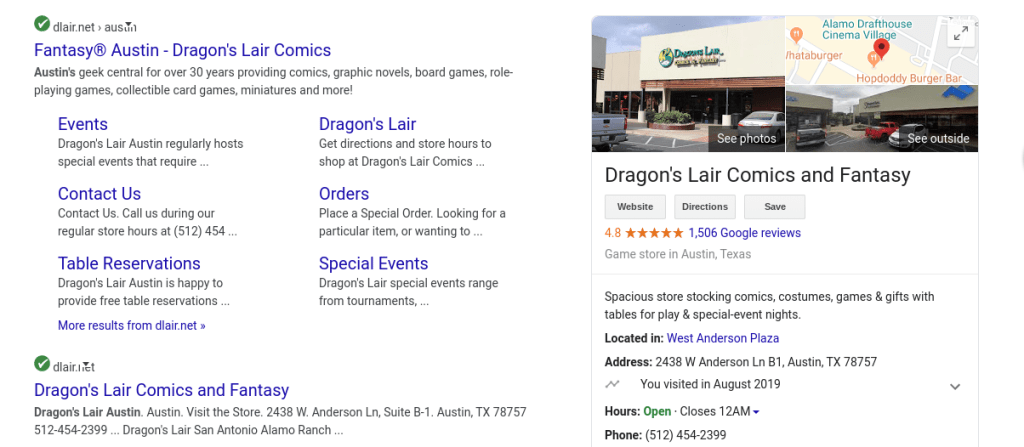 I did a simple search for Dragon’s Lair Austin (in this case looking for a specific business)